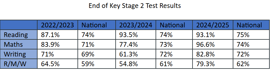 As can be seen, attainment across all core subjects exceeded the national average this year.